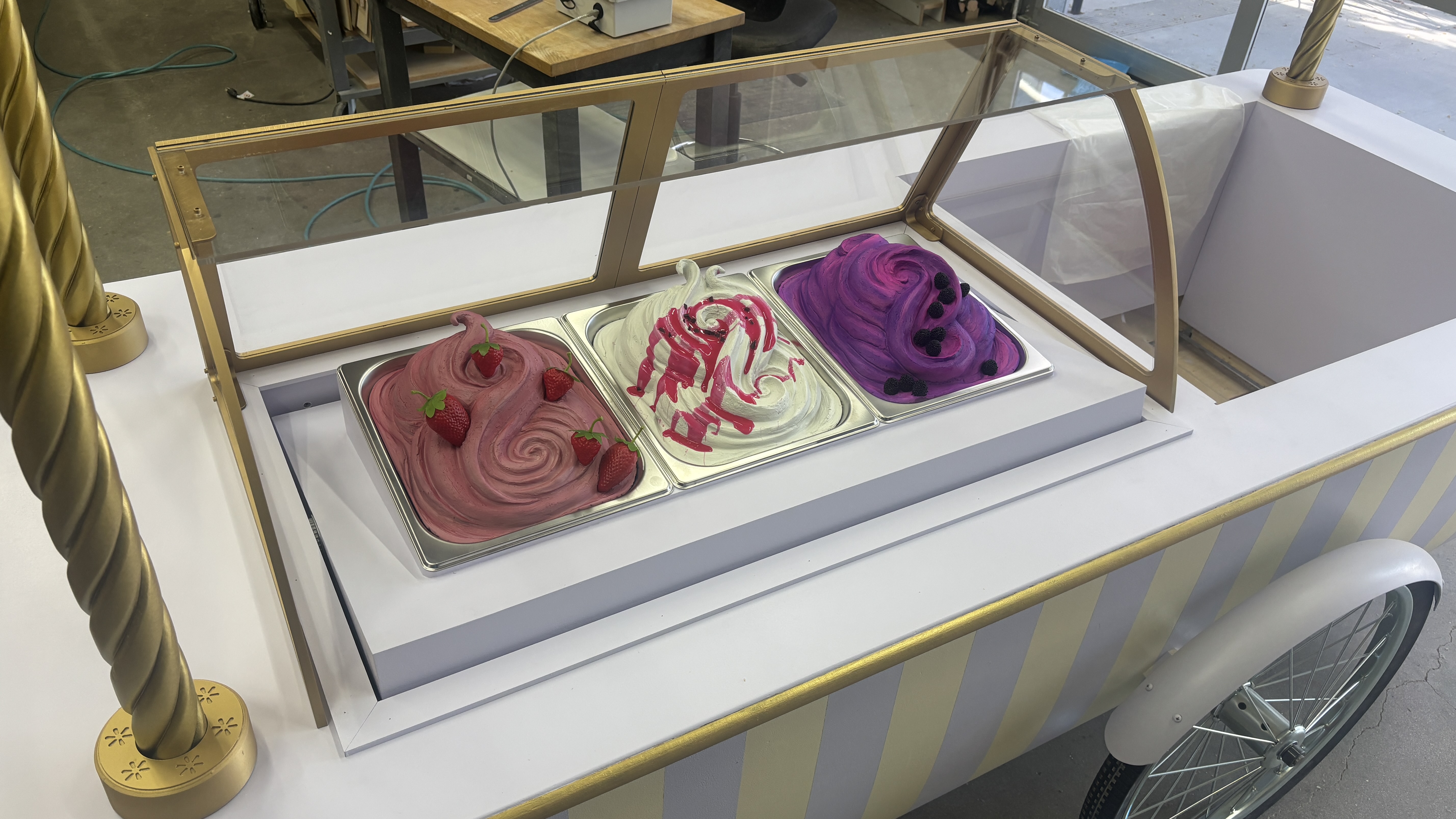 Fabricated a gelato cart that transforms into a shopping kiosk for a Christmas ad campaign.